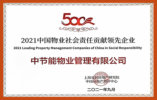 中節能實業下屬物業公司榮獲2021中國物業服務企業綜合實力500強 |